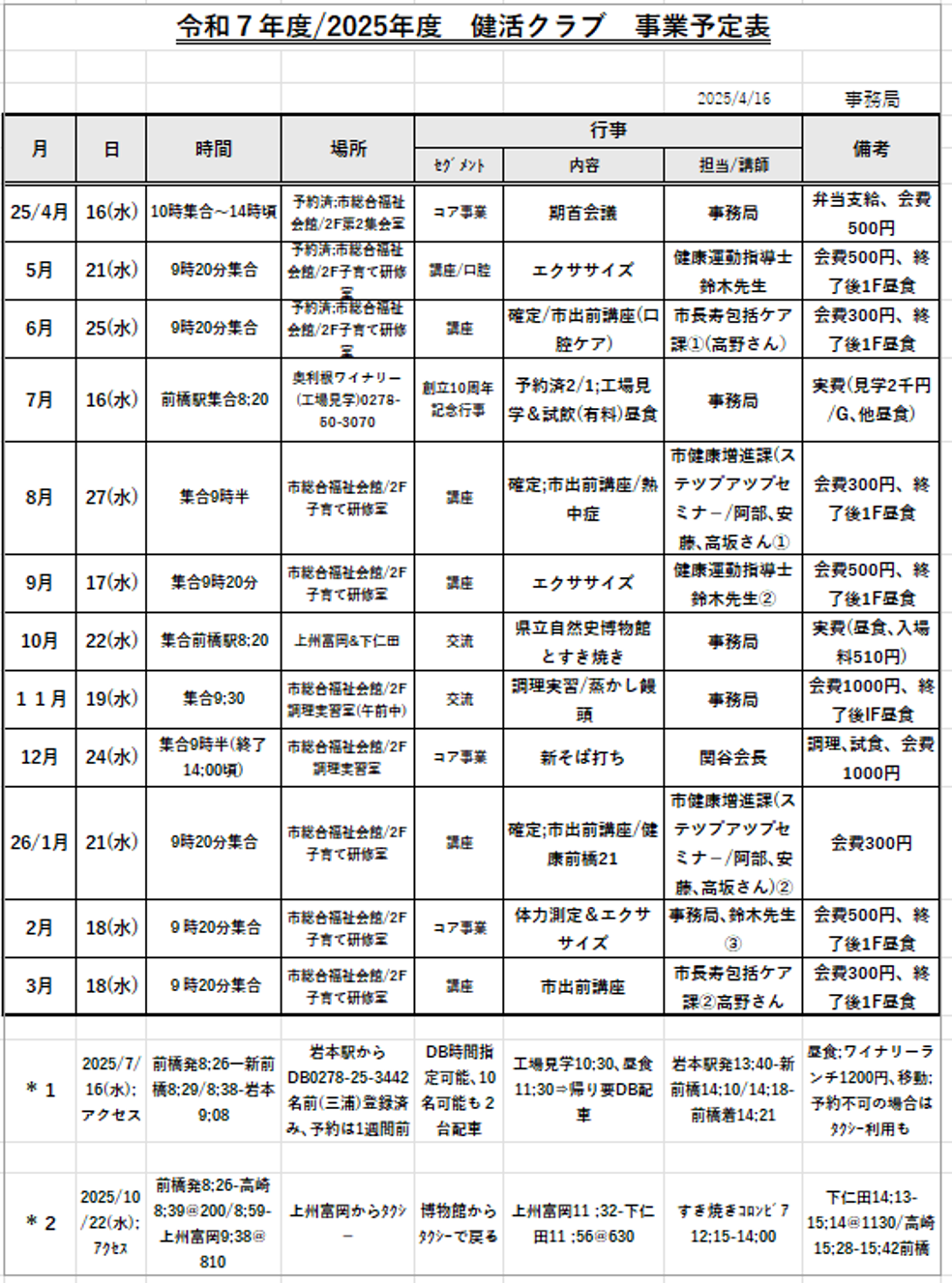 健活クラブは、健康増進活動を通じて、会員相互の親睦を図るとともに、少しでも健康年齢を伸ばし充実した人生をおくることを目的に活動しているクラブです。