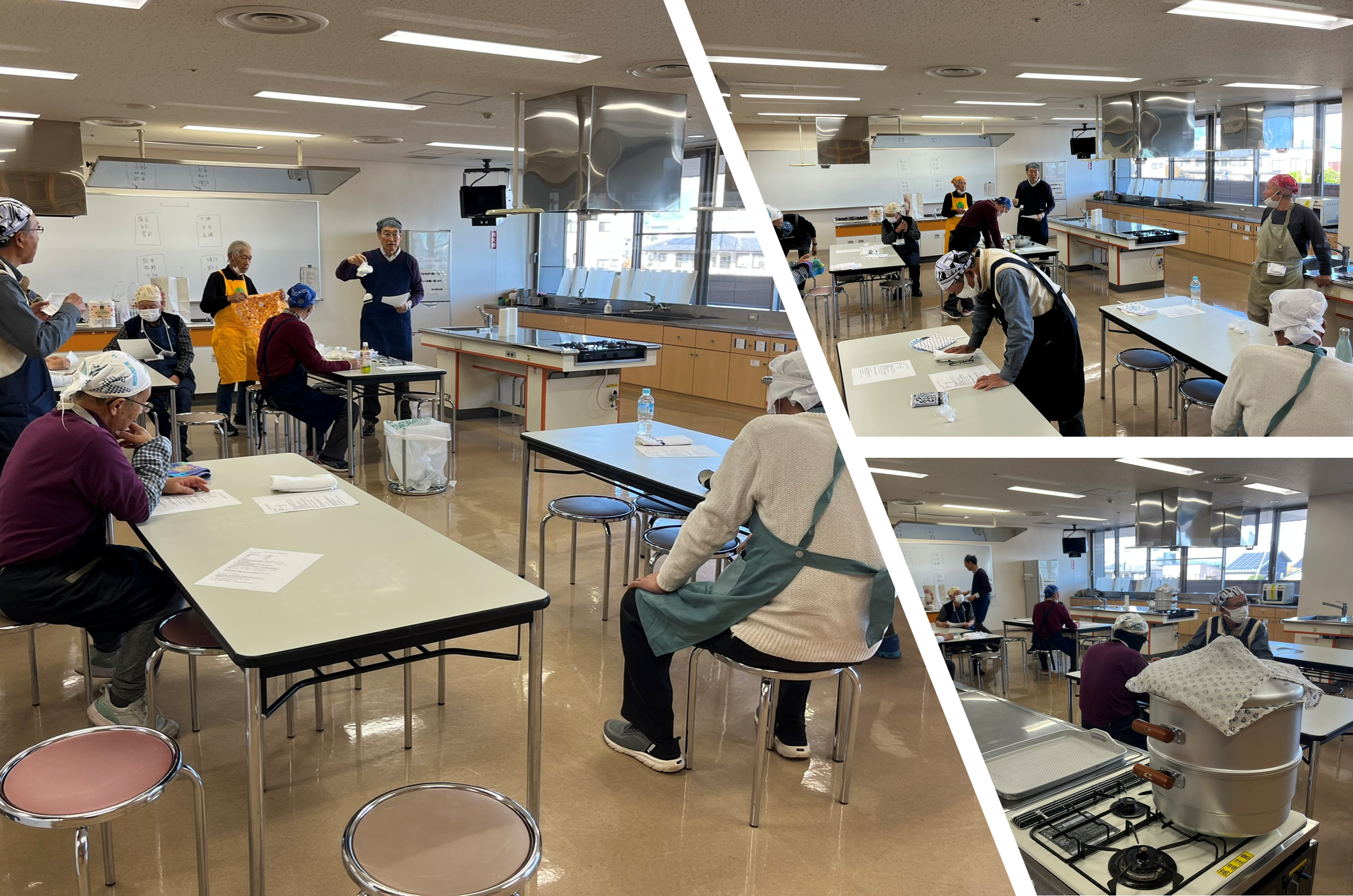 前橋市福祉会館2Fの調理実習室にて、ふかしまんじゅう作りに挑戦しました。予め準備して頂いた食材で、レシピを参考にしながら、3人一組で取り組みました。試行錯誤しながら、なんとか出来上がったふかしまんじゅうを試食した所、見栄えは余り良くありませんでしたが、美味でした。試食後は1Fのレストランへ移動し、昼食をとり、解散となりました。